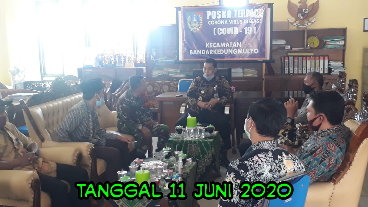 Forkopimcam dan Kepala Desa tentang pembahasan penanganan Covid 19 di Kecamatan bandarkedungmulyo untuk lebih meningkatan guna optimalisasi pengawasan di Desa Desa dalam pencegahan penyebaran covid 19, pendatang dari luar kota harus ijin ke Desa dan menunjukkan surat sehat serta surat jalan dari daerah asal demi keselamatan keluarga didaerah yang dituju dan warga setempat